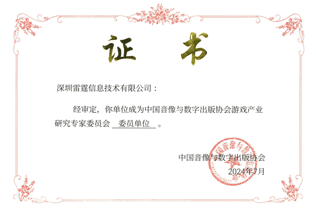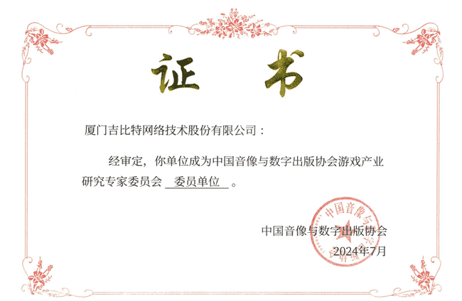 2024年7月25日,,中国音像与数字出版协会游戏产业研究专家委员会(以下简称“中国音数协游戏专委会”)成立大会在上海市召开,,,厦门1win网络技术股份有限公司及其子公司深圳雷霆信息技术有限公司(以下统称“公司”)正式成为中国音数协游戏专委会委员单位。。